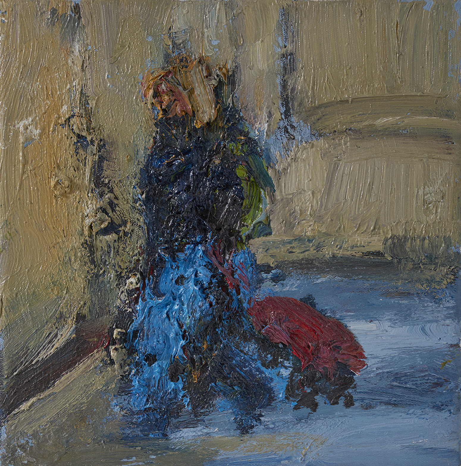 Bien que les toiles puissent, de prime abord, paraître abstraites, la figuration cachée par l’abondance de matière, apparaît doucement et l’on découvre alors le personnage qui est au centre de l’oeuvre, comme digéré par elle. La femme, ou l’homme avec son expression propre, ses limites, sa fragilité ou sa force, son environnement que l’on devine, son isolement, son fardeau, lourd d’une société qui lui impose. Le peintre matérialise ainsi, par l’utilisation d’une lave vivante et visqueuse composée d’huile et de pigments, une atmosphère en couleurs et reliefs d’un expressionisme puissant.