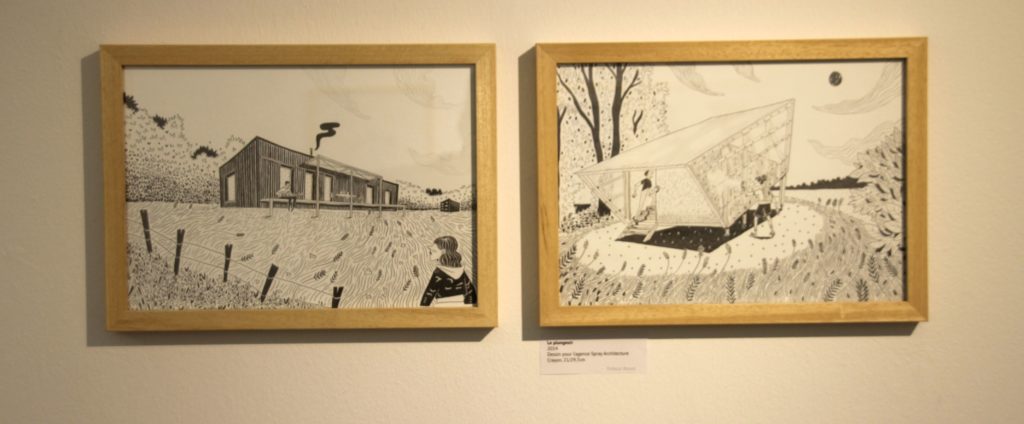 « L’exposition « Architectures Dessinées » réunit 5 artistes dont la production se rejoint dans la nécessité de montrer l’environnement dans lequel nous vivons. Que ce soient des paysages urbains ou naturels, le travail de Diane Berg, Guillaume Ramillien, Martin Etienne, Thibaut Rassat et Max Ducos nous propulse plus loin que le seul fait de représenter. Non il ne s’agit pas ici de «présenter de nouveau» une réalité mais d’ouvrir notre oeil sur quelque chose d’immatériel, sur une sensation nouvelle. Le dessin leur est commun, leur regard est singulier. »