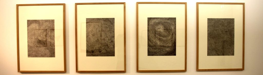 Entourées de dessins à l’encre de Chine où l’imagination s’égare, entre le vide et le plein, dans d’étranges paysages plus ou moins abstraits (l’ambiguïté est, décidément, le statut privilégié de ce geste artistique), deux céramiques de belle taille, énigmatiques telles des sphinx, achèvent de stupéfier le spectateur. Ces sculptures n’ont pas de nom. Les nommer précisément n’aurait fait que dissiper la précieuse inquiétude dont il était question au début de cette brève tentative de description. Monstres de terre cuite, ils nous intriguent plus qu’on ne saurait dire. Reptation animale ou prolifération végétale, leur mouvement, qu’un charme a provisoirement figé dans la matière inerte, reste étonnamment vivant. Il ne réclame, de toute évidence, qu’à reprendre sa croissance pour envahir nos rêves.