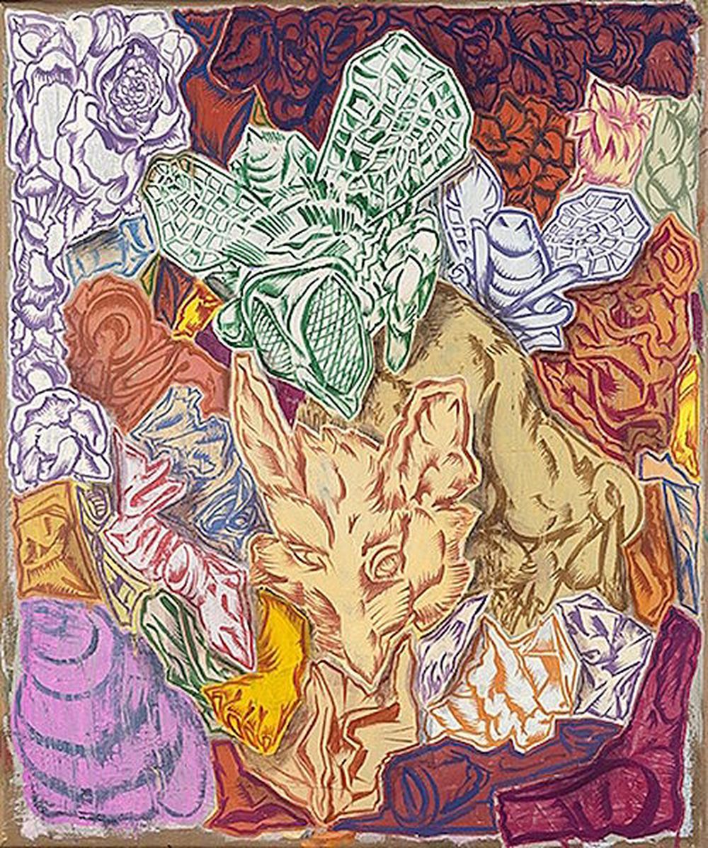 Coda : Allusion ironique au Hortus Conclusus de l’iconographie chrétienne, les Hortus Convulsus (jardins tordus) du peintre allemand Bodo ROTT sont essentiellement basés sur des illustrations scientifiques de la Renaissance et proviennent donc d’une épistémologie où il n’y avait pas de ligne de démarcation nette entre le factuel, le fantasque et le fantastique. Rott lui-même a décrit son travail en plaisantant à moitié comme « papier peint en plastique ». En échange direct entre la surface du tableau et le peintre, qui doit alors improviser, tous les éléments émergent brusquement, se déplacent sans arrêt en vagues terreuses et gonflées et sautent même de la surface grâce à diverses techniques illusionnistes. Leur musicalité rythmique n’est pas sans rappeler le jazz. Pour les yeux de ceux qui errent dans cette jungle de motifs individuels convulsifs, des découvertes surprenantes peuvent être faites.
