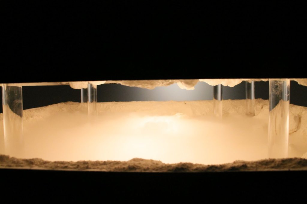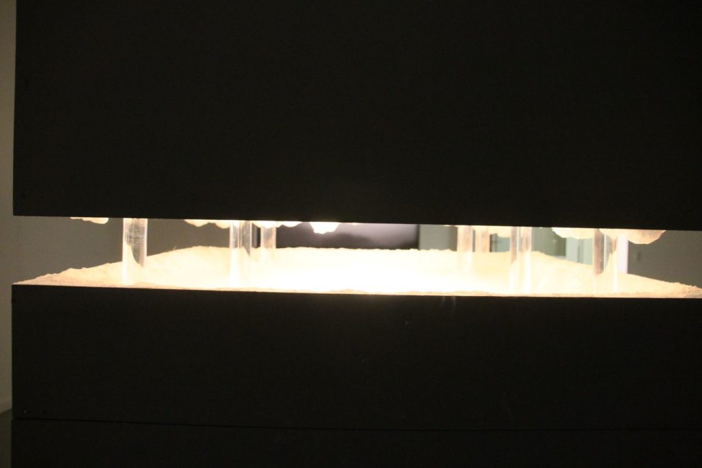 L’inaccessibilité aux souvenirs les plus profondément enfouis en nous est illustrée dans les installations de l’artiste par les imposantes structures noires qui contiennent le paysage, n’en laissant voir qu’une partie. Devant une autre de ses œuvres, le spectateur est dans l’impossibilité de faire le tour de l’installation – trop immense – coincée entre trois murs. Et on ne peut pas percevoir le fond, lointain, voilé…