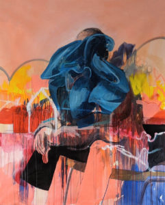 Suite à l’exposition « Jérôme BOREL » l’an passé, nous poursuivons notre partenariat avec la Galerie Olivier WALTMAN (Paris-Miami) d’une manière inédite puisqu’il s’agit de notre première exposition collective ! Les personnages privés de regards des toiles claustrophiles de François BARD, conciliant abstraction et figuration, côtoient les portraits-autoportraits brouillant toute distinction entre tradition et pratique contemporaine de Richard BUTLER (fondateur et chanteur du groupe anglais The Psychedelic Furs) ; les peintures-palimpsestes de Dayron GONZALEZ (dans lesquelles il s’essaie à créer de nouvelles histoires à partir d’images collectées dans la rue ou sur internet) font face aux figurations mystérieuses « à la note jaune » de Julien GRAIZELY – où les corps, par des effets de superposition des motifs et des matières, se croisent entre présence et absence continuelles – et aux portraits charnels de Jérôme LAGARRIGUE dans lesquels ce dernier creuse dans le très intime : c’est la couleur, devenue matière, appliquée à la brosse, en coulures, bourrelets, reflets, flous… qui rend au sujet représenté une réalité profonde, vivante et complexe.