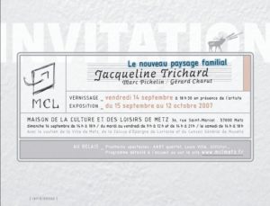Concrètement, le partenariat de la Maison de la Culture et des Loisirs a permis d’accueillir Jacqueline TRICHARD, artiste photographe, en résidence à Metz et de lui confier une mission photographique sur le thème pré-cité dans l’agglomération messine. C’est ainsi qu’une collaboration a vu le jour dans le cadre d’une classe APAC avec l’école Jean Monet de Metz Bellecroix. Les travaux réalisés par les élèves seront présentés parallèlement à l’exposition des artistes professionnels.
