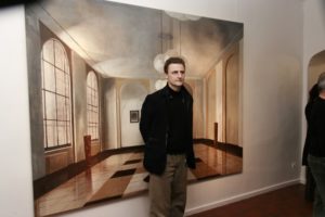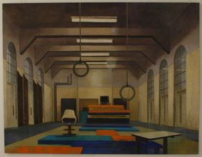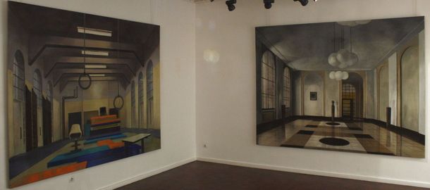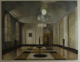 Les toiles de Martin Kasper présentent généralement des lieux d’attente. Halls de gare, de théâtre, lieux publics, couloirs de métro.