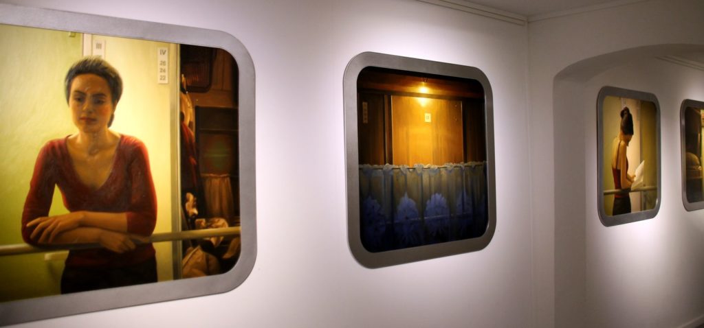 Bien que couramment classée dans la catégorie néo ou post-pop, ce qui touche immédiatement dans l’œuvre de Maxim Wakultschik, c’est son caractère instinctif, que l’on ne peut catégoriser dans une école de pensée. Ainsi, la lumière, douce ou artificielle, voire industrielle n’est pas sans rappeler certaines œuvres de Edward Hopper et les mélodrames américains des années 50. Par ailleurs, l’ambiance de « Trainwindows » est intemporelle, comme si le passé ou l’avenir n’existait que dans la géographie du voyage, ce qui place le spectateur dans une position de voyeur désincarné face à une anonyme intimité. L’expérience émotionnelle est unique. Qu’il s’agisse des personnalités multiples, des grosses boites ou des images fugacement entrevues dans les trains, l’artiste nous entraîne immanquablement dans une esthétique de la disparition.