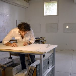 Puis il coupa en deux cet espace. Et il put s’y glisser, de profil. Le vide eut alors une issue sur terre. Ce fut le commencement de la liberté et, il me semble, la voie par laquelle il comprit qu’il avait sa place dans son œuvre. Ce fut en son centre. Quel trajet pour découvrir à la fois son art et soi-même ! Il vit actuellement dans la poutrelle d’acier, entre terre et ciel.