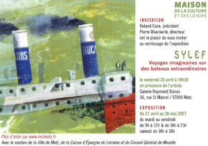 Sylef est fasciné par les paquebots et les cargos, il construit chacune de ses toiles autour d’un bateau extravagant, né de son imagination, auquel il invente une vie, un destin, une personnalité. Ses tableaux racontent ainsi des histoires de mer, souvent excentriques, toujours fascinantes. Il expose régulièrement ses oeuvres à Paris ou au Havre.