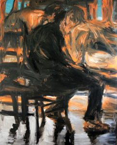 Gestuelle, impatiente, mnémonique, telle est la peinture de Youcef Korichi. Faite de rapports, de rappels et de mémoires, elle abandonne la re/présentation pour lier diverses rémanences, reliquats (personnes ou objets aperçus, morceaux de peinture). Faire image sans doute, une image qui nous fixe, nous interroge plus qu’elle ne semble vouloir expliquer ou illustrer.