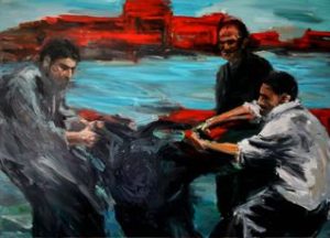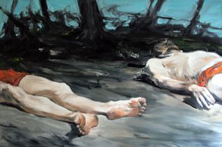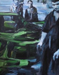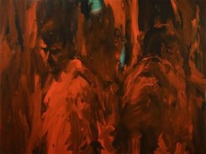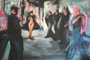 Les toiles sont à la fois imprégnées de l’actualité dans ce qu’elle peut avoir de plus absurde (posture d’attente, figures en déséquilibre, silhouettes menaçantes…) et nourries d’une relecture de thèmes mythologiques (Suzanne au bain, Diane chasseresse, Actéon…). Tout semble demander : victimes ou bourreaux ? Coupables ou innocents ? Point de réponse. Ce constat des conflits, du désenchantement politique, sert de base à une interrogation sur l’être en soi (sa solitude en particulier) et sur ses motivations réelles (désir de pouvoir et de domination).