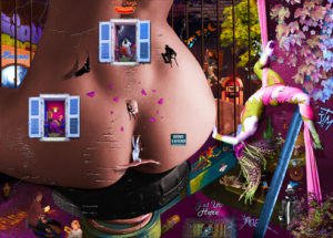 « Les tableaux que je compose sont une interface entre deux mondes parallèles. Le premier, celui dont j’ai hérité, est constitué de différents stéréotypes et codes tribaux. Le second est un espace de liberté que je compose au travers d’une multitude de symboles, de fantasmes… Pour être un peu moins monsieur tout le monde, un peu moins un pervers polymorphe frustré ».